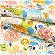 Tela oxford de Cosmo en color crema con pájaros y flores de colores Tela