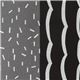 tela de lona en negro y gris con manchitas plateadas metalizadas, rayas, ondas, lunares y guiones