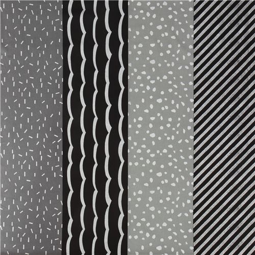 Fat Quarter (50 x 55 cm) - Tela de lona de echino con franjas y estampados negro gris plateado metal