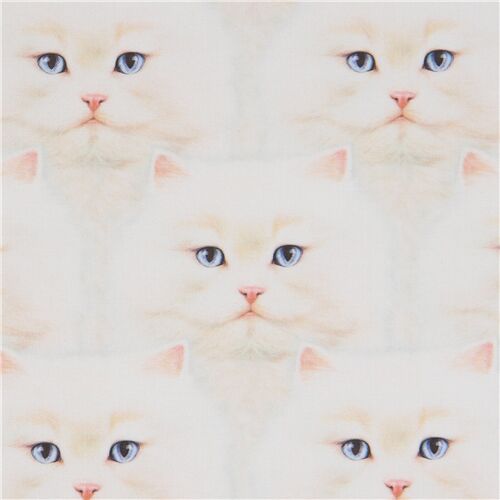 Tela crema claro de animales de Robert Kaufman tela de algodón crema claro con caras de gato de ojos azules