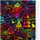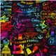 Tela negra de Timeless Treasures palabras de costura inglés en colores arcoiris Tela
