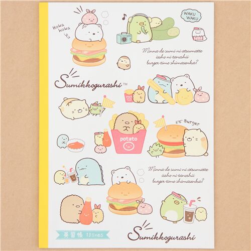 Cuaderno de ejercicios con Sumikkogurashi y comida rápida