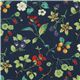 de Japanese IndieTela verde oscuro de flores y frutos tela de algodón negra con frambuesas, grosellas rojas, moras, etc.