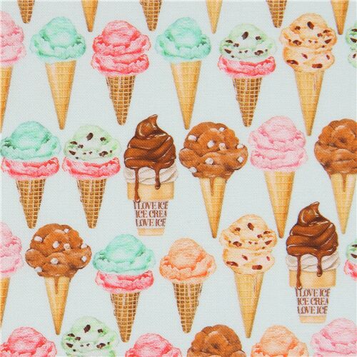 Tela de helados de cucurucho de Robert Kaufman tela de algodón verde menta claro con helados en marrón, rosa, verde, etc.