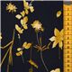 de Japanese IndieTela de flores tela sabanera de algodón en azul muy oscuro con flores amarillas dispersas, tallos y hojas tejido de muy alta calidad, con la perfección típica de los textiles japoneses