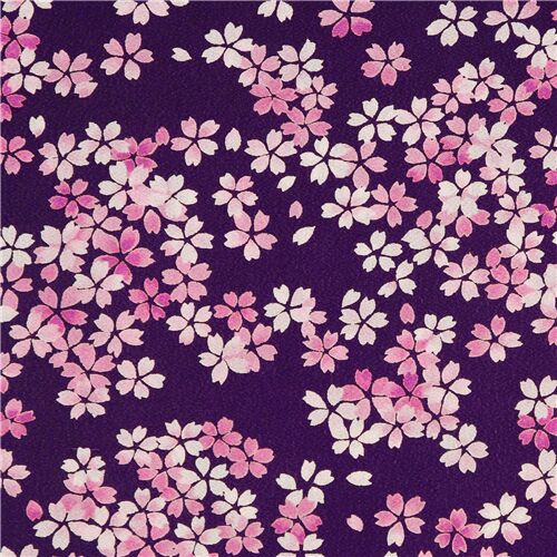 de KokkaTela kimono japonesa crepé violeta flor cerezo rosa Kokka tela tramada japonesa de crepé futakoshi chirimen morada con flores de cerezo sakura en tonos rosas