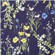 Tela de linón japonesa floral azul marino con flores silvestres de prado Tela