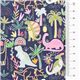 Tela azul oscuro de dinosaurios de colores Dear Stella arcoíris plantas flores Tela