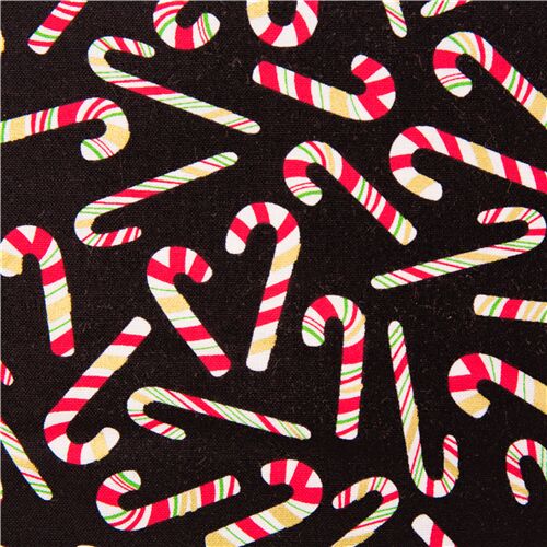 23 Tela bastones de caramelo Michael Miller algodón negro rayas blanco rojo dorados Fabric by Michael Miller - modesS4u