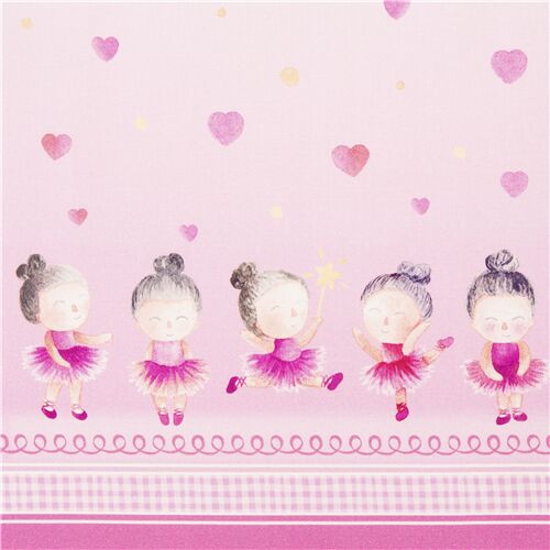 • Tela de algodón blanco bailarinas rosa corona flor corazón lazo