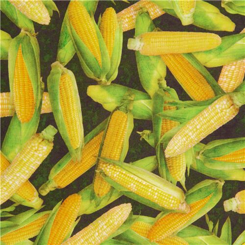 Tela verdura fresca mazorca maíz algodón negro de Quilting Treasures EE. UU. Tela