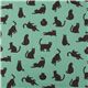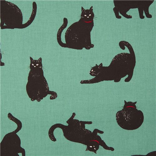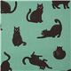 6,23 Gatos negros de collar rojo en varias poses sobre tela verde laminada de Japón Fabric by Cosmo - modesS4u