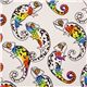 de Alexander HenryTela de camaleones sobre blanco Esta tela luce graciosos camaleones en blanco y negro con manchas arcoíris, sobre fondo blanco tela de Estados Unidos 100% algodón, gran calidad de tejido e impresión propias de Alexander Henry