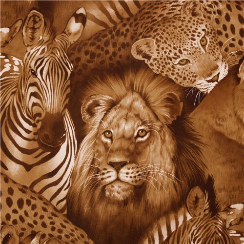 24 Alexander Henry tela marrón sepia animales salvajes sabana león cebra guepardo Fabric by Alexander Henry - modesS4u