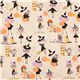 Tela beis crudo Halloween brujas tonos pastel gatos calabazas Tela
