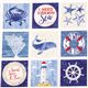 Tela de cuadros Michael Miller algodón con iconos del mar azul blanco rojo Tela