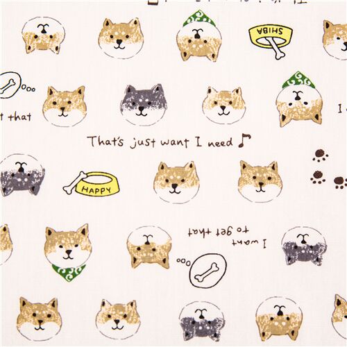 55 Tela japonesa blanco roto perros Shiba Inu con pañuelo al cuello cuenco y hueso Fabric by Japanese Indie - modesS4u