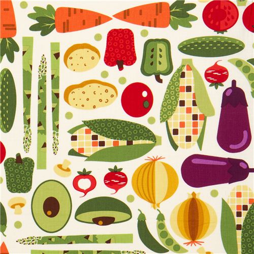 Tissu Timeless Treasures crème avec des légumes colorés Tissu
