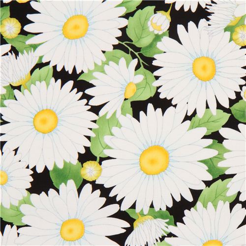 Tissu Timeless Treasures noir avec des marguerites Tissu