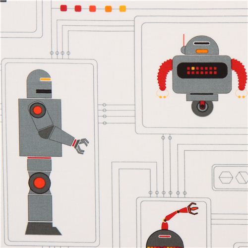 tissu en coton blanc avec plein de robots gris
