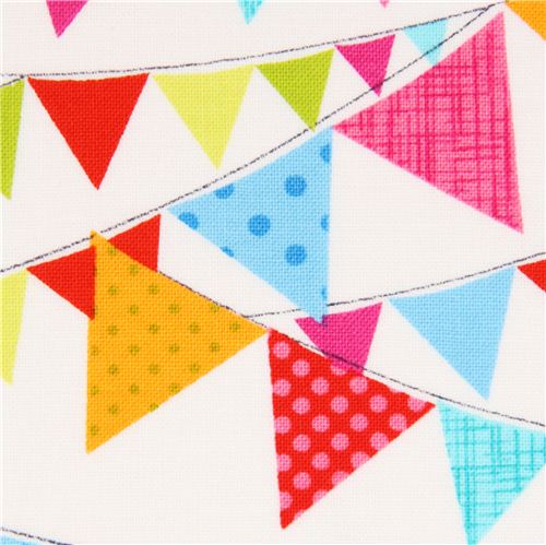 tissu en coton blanc avec plein de guirlandes de fanions multicolores