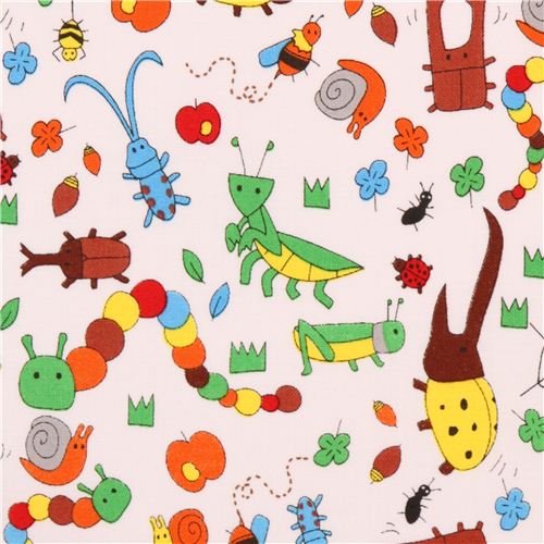 Tissu japonais série animaux avec des insectes, des chenilles, des sauterelles, des noix, des pommes, etc ...