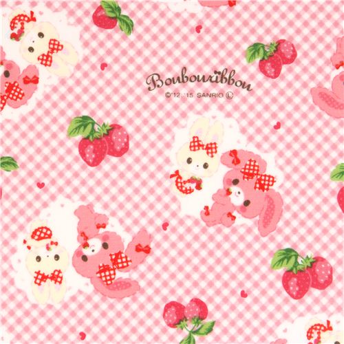 30 Tissu Oxford à carreaux rose clair et blancs avec des lapins, des fraises Fabric by Sanrio - modeS4u