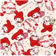 tissu crème recouvert d'un film laminé avec My Melody, des pois rouges et vert clair, des coeurs, des jouets, etc ...