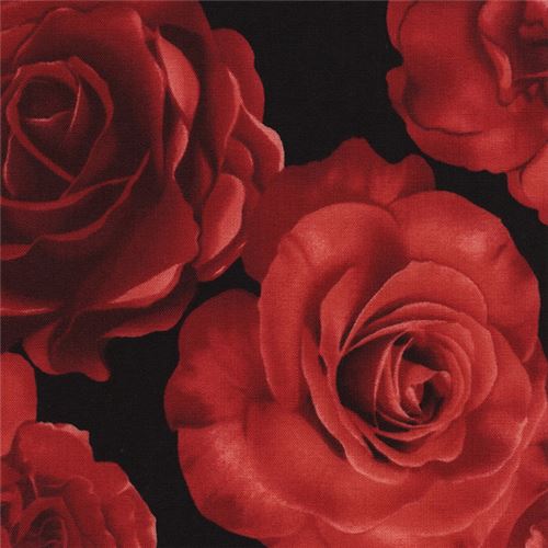 Tissu à fleurs tissu en coton noir avec des grandes roses rouges tissu de très grande qualité, excellente qualité typique de Timeless Treasures