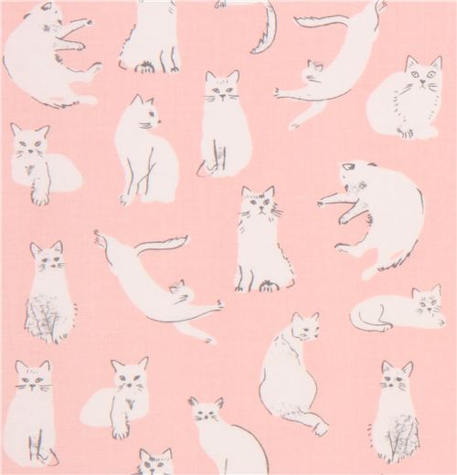 tissu en coton pêche avec des petits chats crème clair