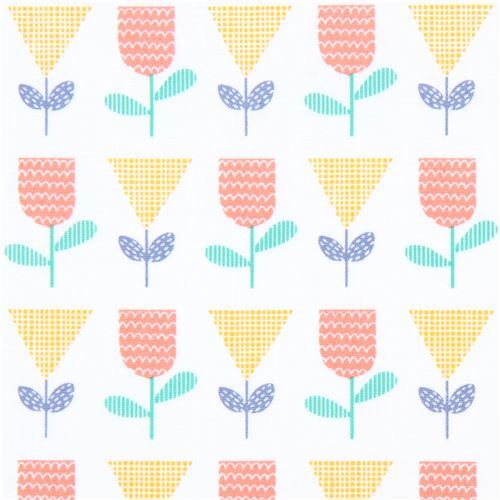 par Andover FabricsTissu à fleurs tissu blanc en coton avec des fleurs orange-pêche et jaunes, avec des feuilles vertes et bleues tissu de très grande qualité, excellente qualité typique des tissus américains
