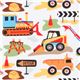 Tissu Michael Miller blanc avec des véhicules de chantier, Dig It Tissu