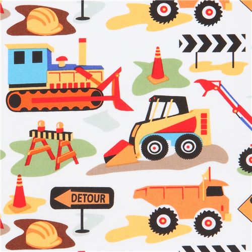 par Michael MillerTissu Michael Miller avec des véhicules de chantier tissu en coton blanc avec des véhicules de chantie multicolores, des panneaux, etc... tissu de très grande qualité, excellente qualité typique de Michael Miller