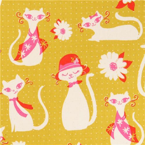 Tissu avec des chats tissu en coton jaune moutarde avec des chats tissu de très grande qualité, excellente qualité typique de Cotton + Steel