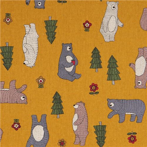 par Japanese IndieToile japonaise avec des ours toile marron-jaune moutarde avec des ours tissu de très grande qualité, excellente qualité typiquement japonaise
