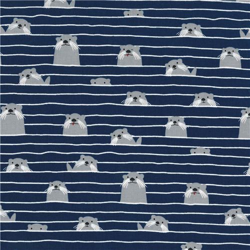 Tissu Michael Miller avec des otaries. tissu en coton bleu foncé avec des otaries, des rayures tissu de très grande qualité, excellente qualité typique de Michael Miller