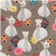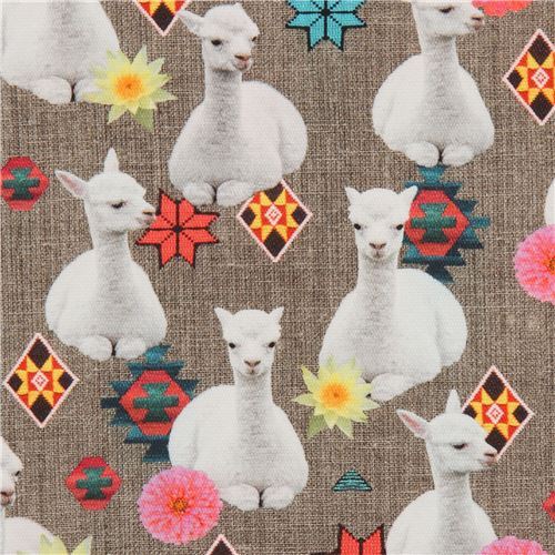 Toile taupe avec des alpagas et des fleurs Tissu