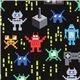 par Timeless TreasuresTissu noir avec des extraterrestres de jeu vidéo rétro tissu noir avec des manettes de jeu, des extraterrestres de jeux vidéo bleus, verts, orange, rouges, gris, sous forme de pixels