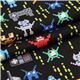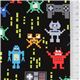 Tissu Timeless Treasures noir avec des extraterrestres de jeu vidéo multicolores Tissu