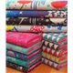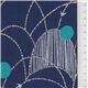 par Echino FabricsToile echino bleu foncé avec des montagnes toile bleu foncé avec des collines, des oiseaux et des rayures argentés et des pois verts