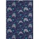 Toile echino bleu marine avec des montagnes et des oiseaux argentés Tissu