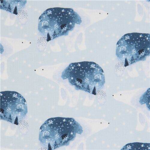 7 Tissu bleu clair avec des ours polaires Fabric by Dear Stella - modeS4u