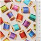 Tissu Robert Kaufman beige avec pleins de bobines de fils multicolores Tissu