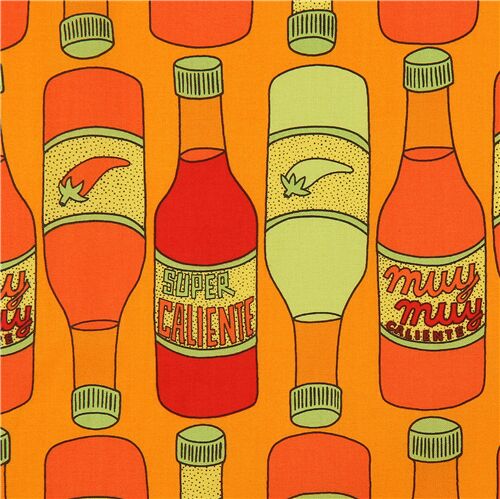 Tissu Alexander Henry orange avec des flacons de sauces Tissu