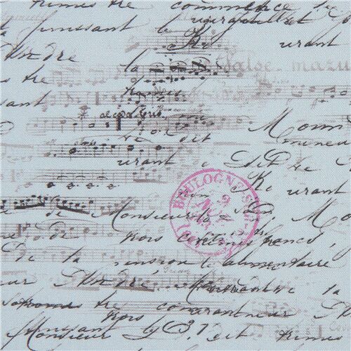 Tissu Michael Miller bleu avec des textes tissu bleu avec des textes manuscrits, des notes de musique, etc.
