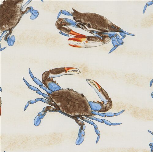 27 Tissu crème avec des crables bleus, la plage Fabric by Timeless Treasures - modeS4u