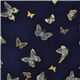 Tissu en coton Robert Kaufman bleu roi avec des papillons bleus et or métallique Tissu