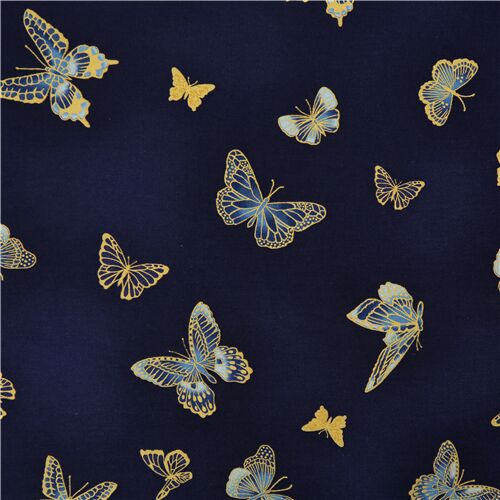 Tissu Robert Kaufman bleu avec des papillons or métallique tissu en coton bleu roi avec des motifs de papillons or métallique