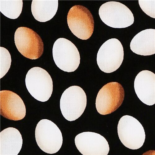 23 Tissu en coton noir Timeless Treasure avec des oeufs beige et blancs Fabric by Timeless Treasures - modeS4u