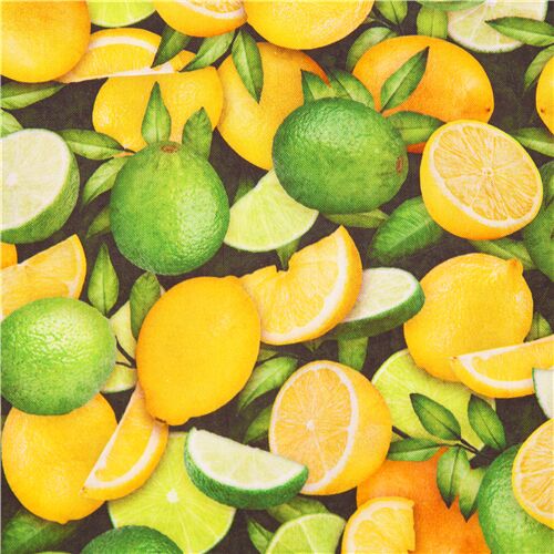6,8 Tissu en coton Quilting Treasures feuilles et citrons verts et jaunes entassés Fabric by Japanese Indie - modeS4u